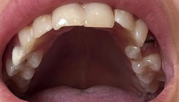 Instead, if you’re looking for a more aesthetic and long-term solution, we could consider zirconium crowns for the upper jaw (around 12 teeth). This would improve both the appearance and function in a much more stable way.